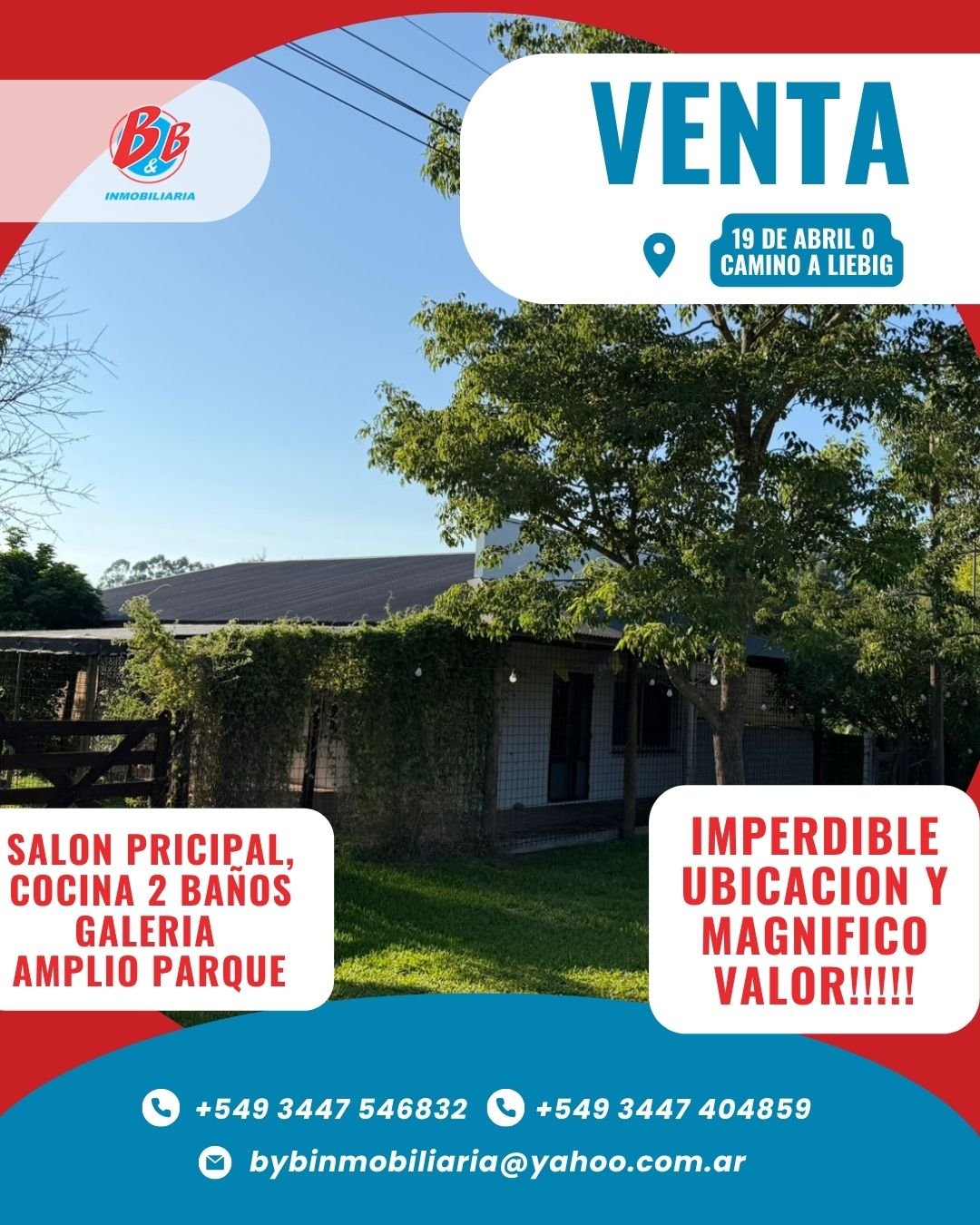 PROPIEDAD ESTRATEGICAMENTE UBICADA POR CALLE 19 DE ABRIL, CAMINO A LIEBIG A SOLO 1000 M DE LA ROTAONDA DE RUTA 130.